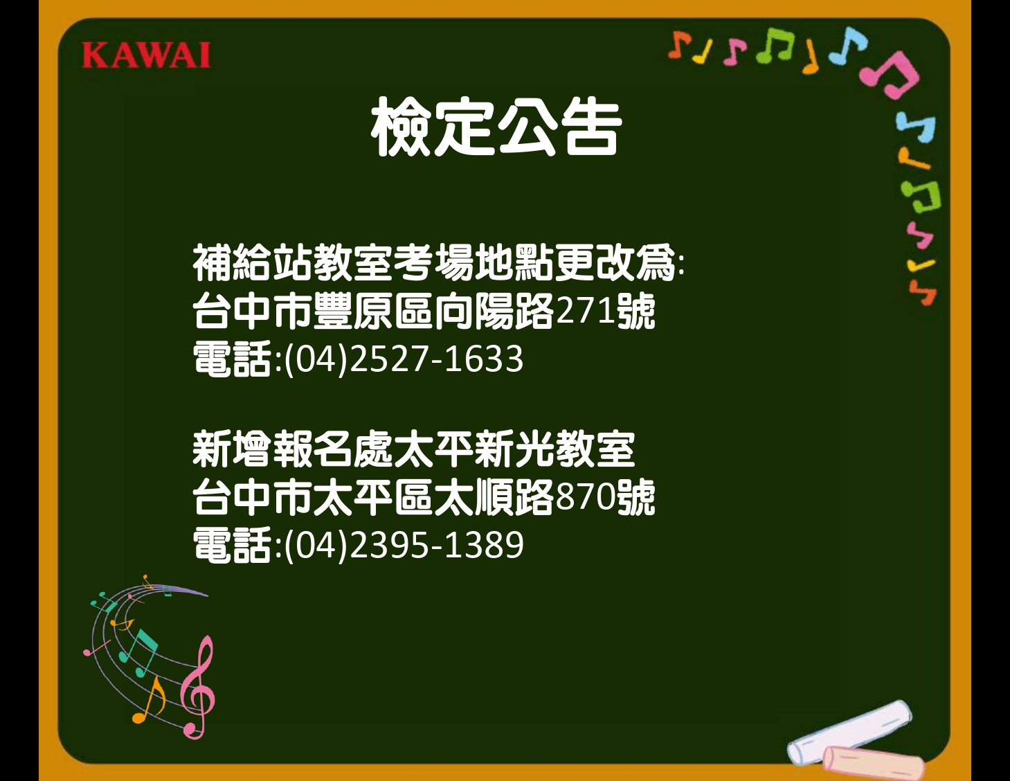 《補給站教室》考場地址更改為:台中市豐原區向陽路271號